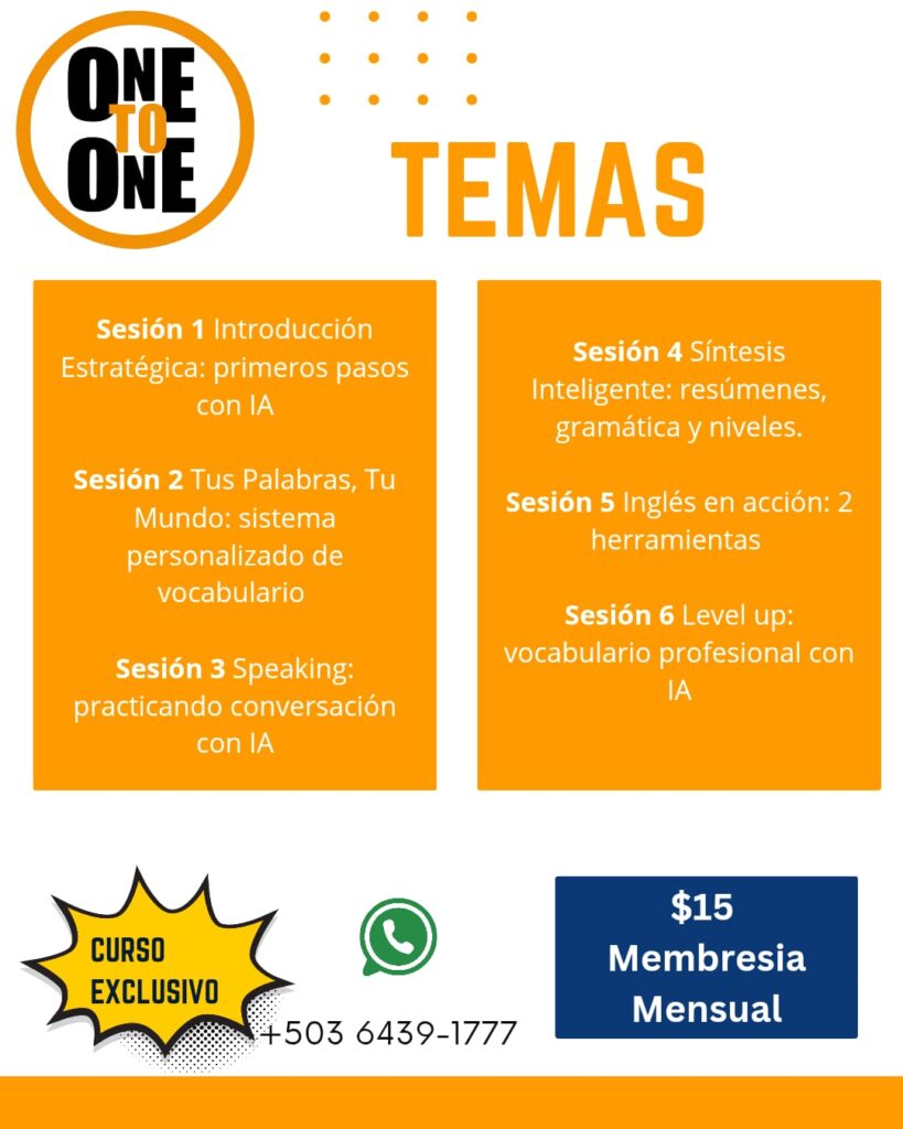 One to One significa “uno a uno”. Lastimosamente, la palabra PERSONALIZADO ha sido abusado en la educación pero con nuestro programa de clases privadas podemos verdaderamente personalizar el proceso educativo. Al experimentar la atención One to One, la motivación incrementa y el progreso es inevitable. ¿Pero de dónde salió el programa?